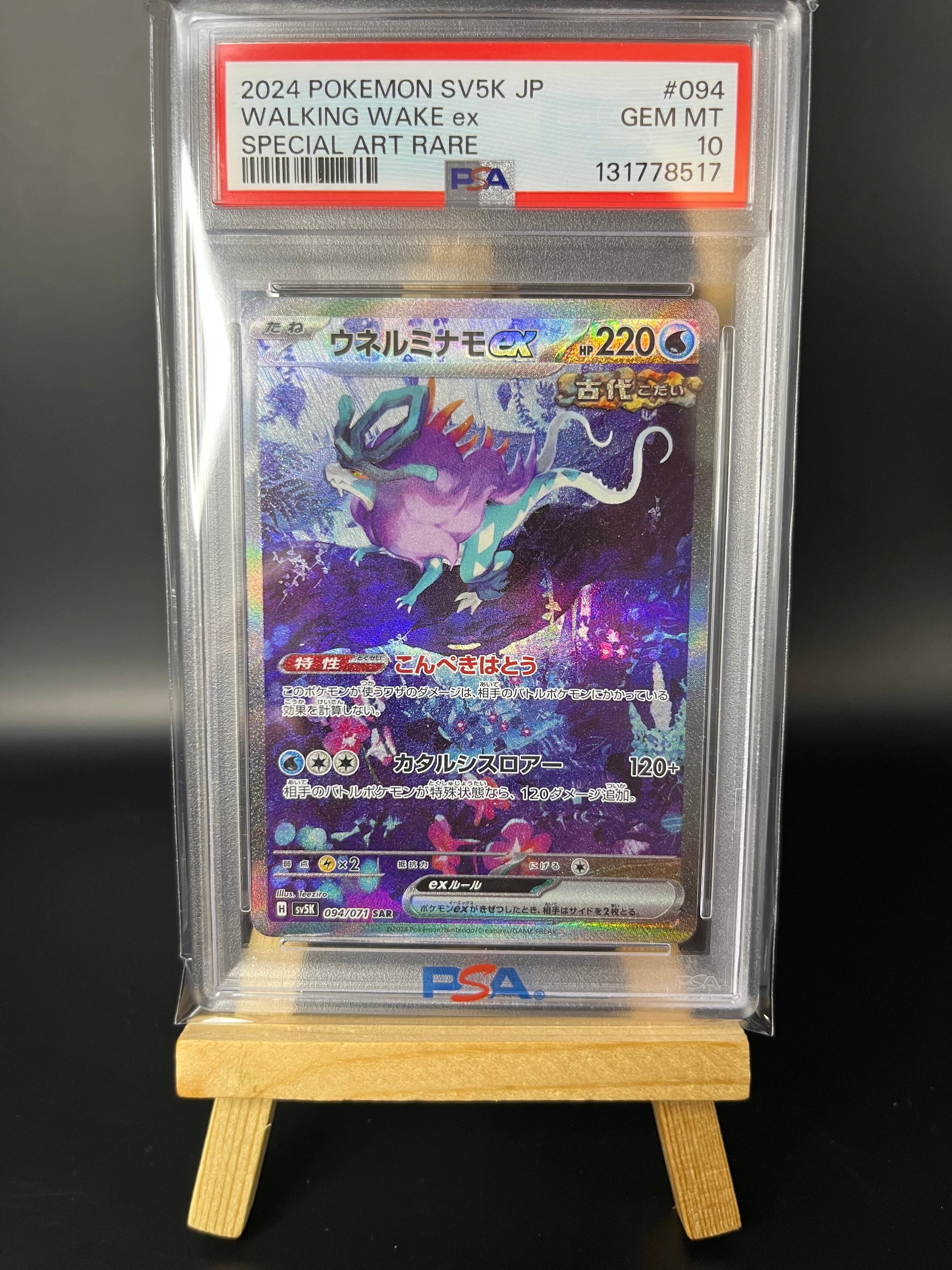 Die Pokemon Karte Windewoge - Walking Wake ex (sv5K 094) PSA 10 - Wild Force - Japanese Walking Wake ex aus der Wild Force-Serie (sv5K 094) befindet sich in PSA 10 Zustand – eine der gefragtesten Karten der modernen Pokémon TCG. Diese japanische Ausgabe wurde von Professional Sports Authenticator mit der höchsten Bewertung zertifiziert und repräsentiert makellose Qualität. Die Karte zeigt das legendäre Wasser-Pokémon in beeindruckender Illustration und ist ein Muss für ernsthafte Sammler und Spieler. Mit PSA 10 Zertifizierung garantiert diese Karte langfristige Wertbeständigkeit und Authentizität.